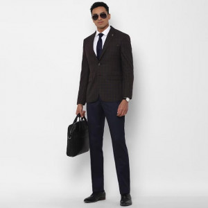 Men Brown & Navy Blue Checked Slim-Fit Formal Blazer